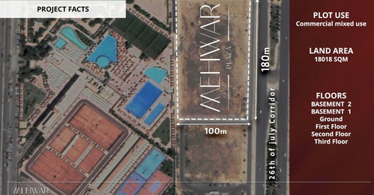 Mehwar Plaza boasts a stellar location on the 26th of July axis, with a convenient 180-meter frontage. This ensures easy access and high visibility for your business.