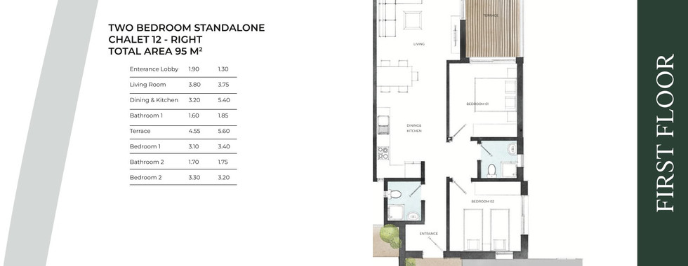 2-Bedroom Chalets: 96m² - 106m² (starting price: 7.4 million EGP)